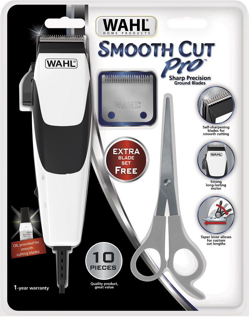 The clipper has a taper lever which allows for creative styling. The adjustable taper lever makes blending easy and the 4 guide combs give you a variety of cutting lengths and customizable designs to choose from. This clipper kit comes with an extra FREE blade set! Wahl blades are self-sharpening and stay sharper for longer. If you are using this at home, the extra blade set will help you save even more money as you will get more cuts out of the kit. The more cuts you do, the more money you save. Great value packed into this convenient kit. If you are cutting to earn some money on the side, the extra blade set also means you make more money. Let the Smooth Cut Pro be your easiest and most convenient way to save or earn more money.