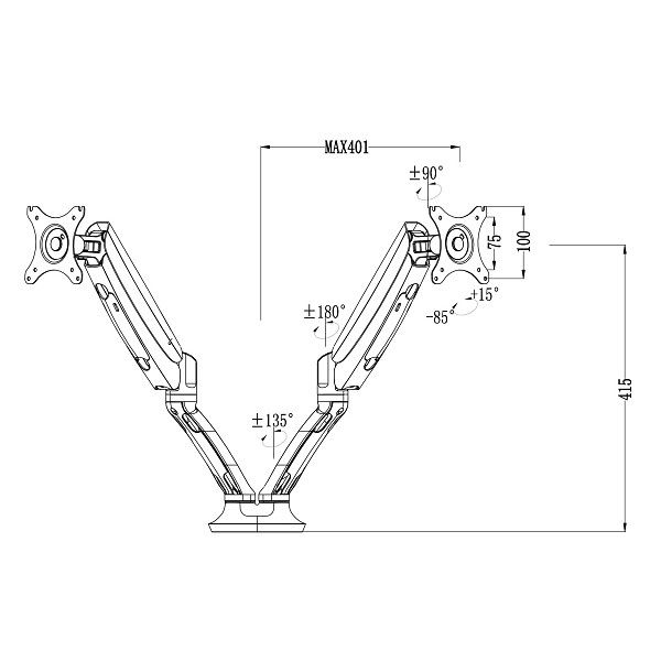 - Gas spring hovering system allows for easy monitor height adjustment